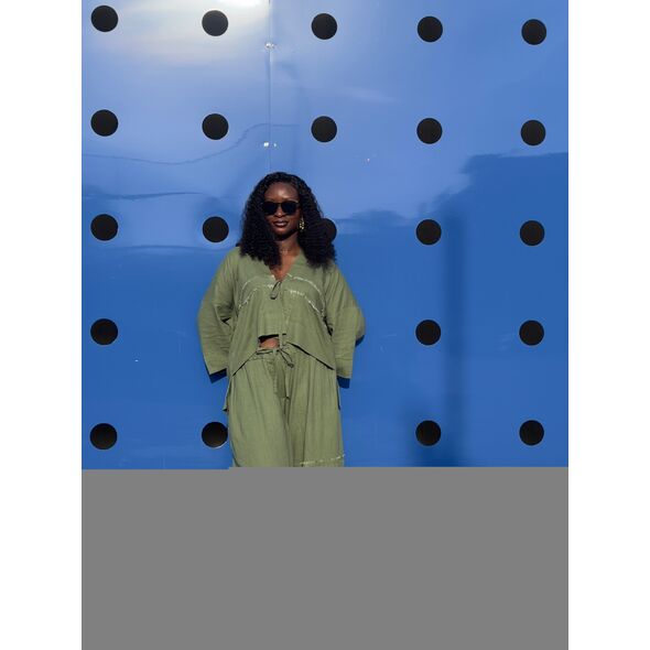 Color: Dark Green Kimono Top & Pants Material: 100% Linen Gender: Women