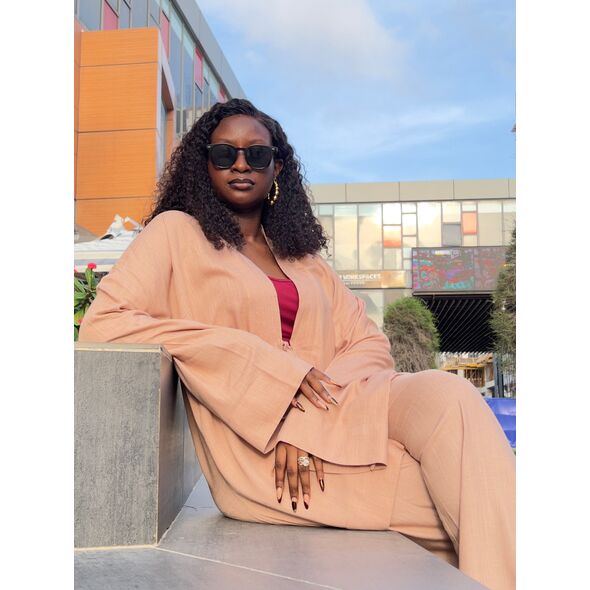 Color: Patterned Beige Kimono Top & Pants Material: 100% Linen Gender: Women