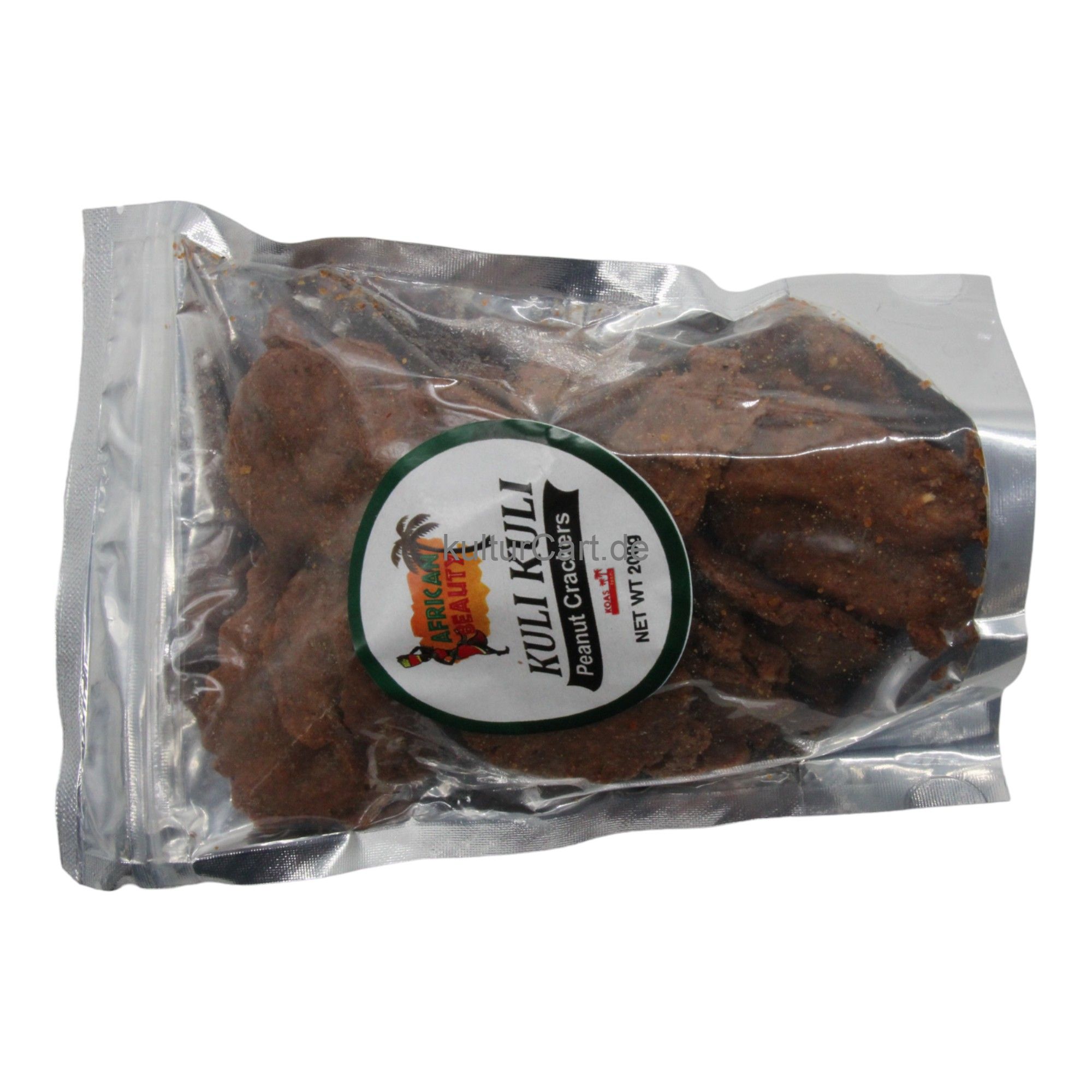 African Beauty Kuli Kuli Peanut Crackers, in a 200g package, are a traditional West African snack made from ground peanuts. These crunchy and flavorful crackers are perfect for enjoying on their own or with your favorite dips.