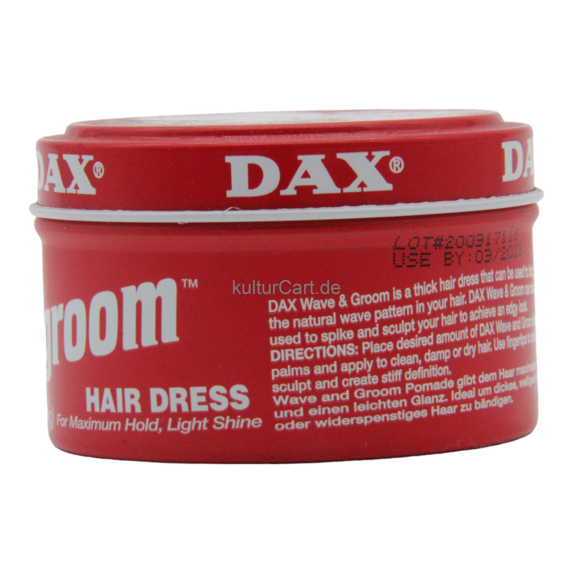 Dax Wave and Groom is a 99g hair pomade designed to offer strong hold and excellent sculpting power for all hair types, particularly effective for thick or curly hair. This classic pomade helps create defined waves and sleek styles, providing a polished look that lasts all day.