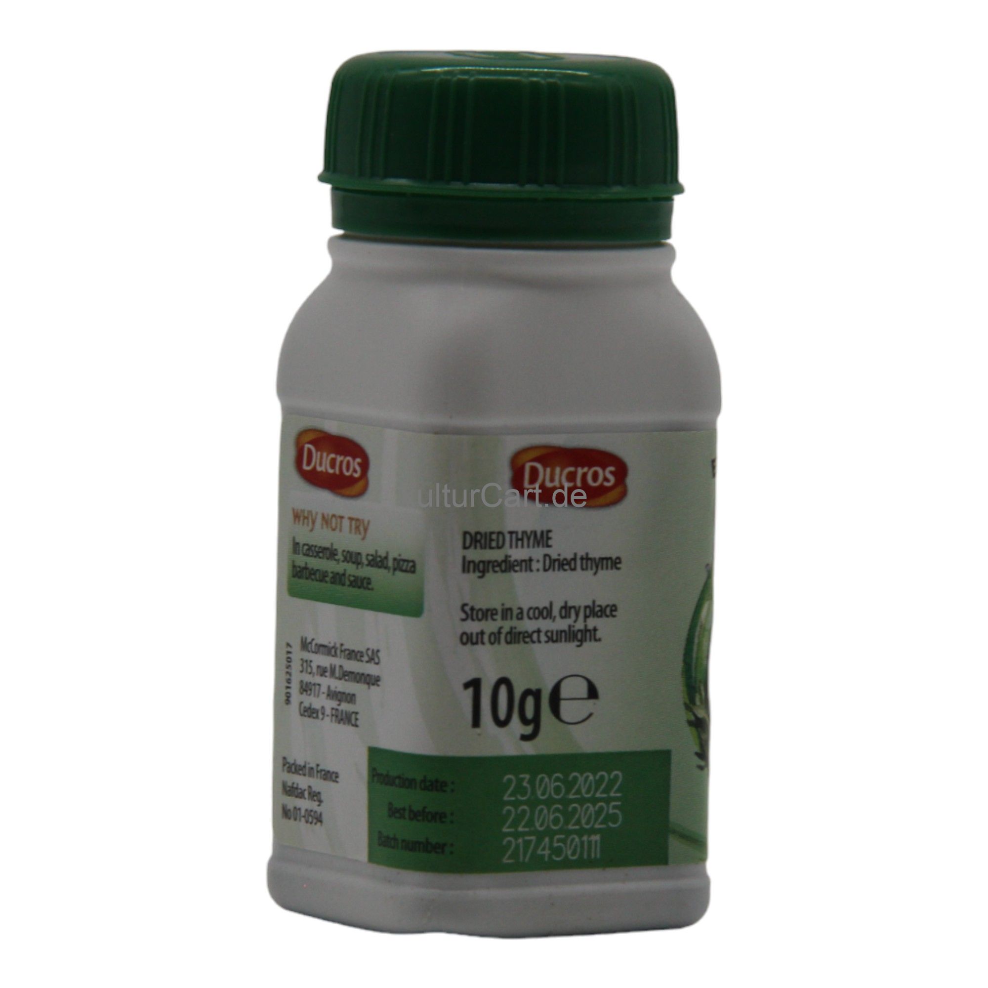 Ducros Dried Thyme, offered in a 10g container, is a versatile herb that brings a robust and aromatic flavor to a variety of dishes. Carefully dried to preserve its essential oils, this thyme provides an earthy, slightly minty taste that enhances the complexity of both savory and sweet recipes. It is a staple in Mediterranean and European cuisine, ideal for seasoning meats, vegetables, and even baked goods.