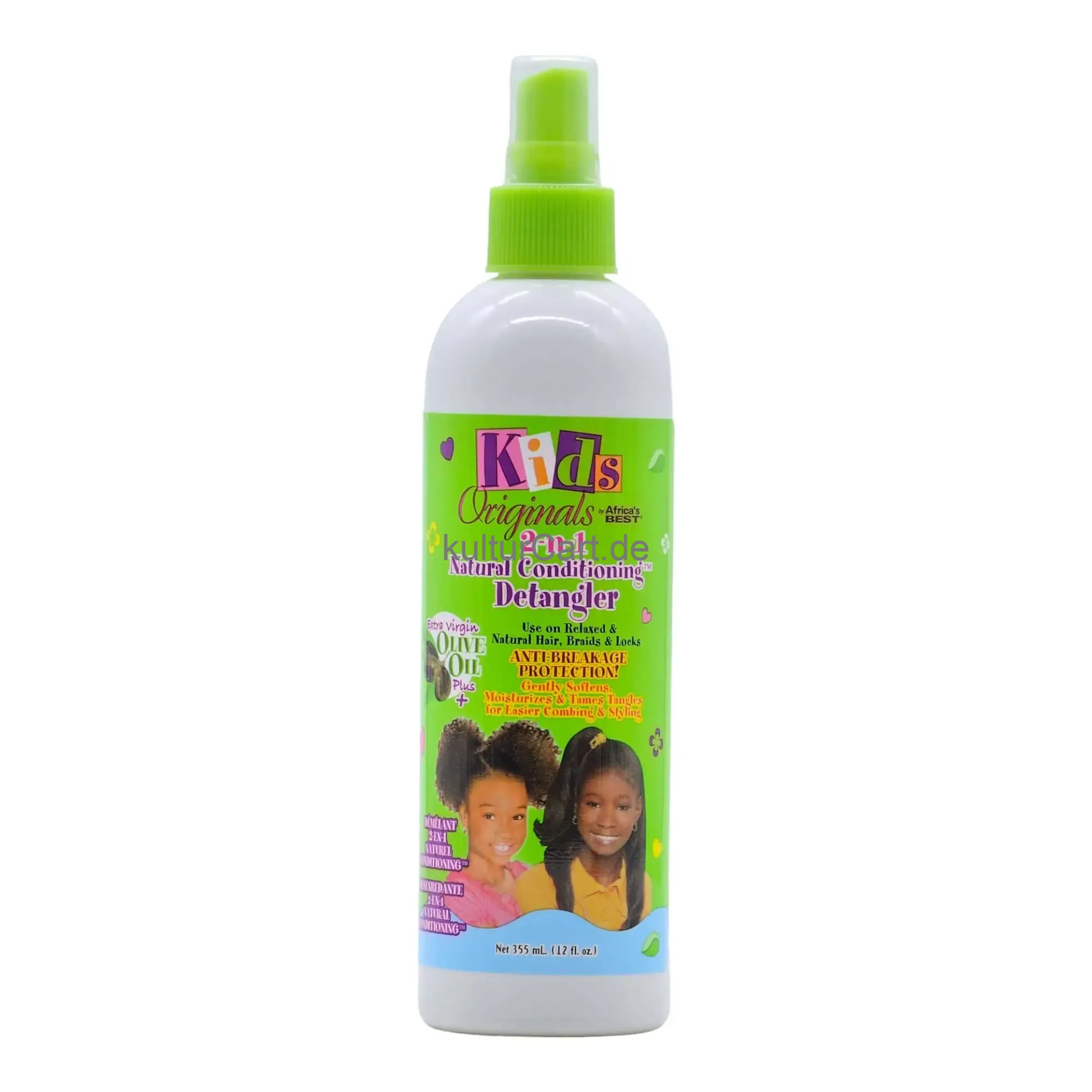 Moisturize and detangle your child's hair with Kids Originals 2 in 1 Natural Conditioning Detangler (355ml), providing intense moisture and shine for easy management and styling.