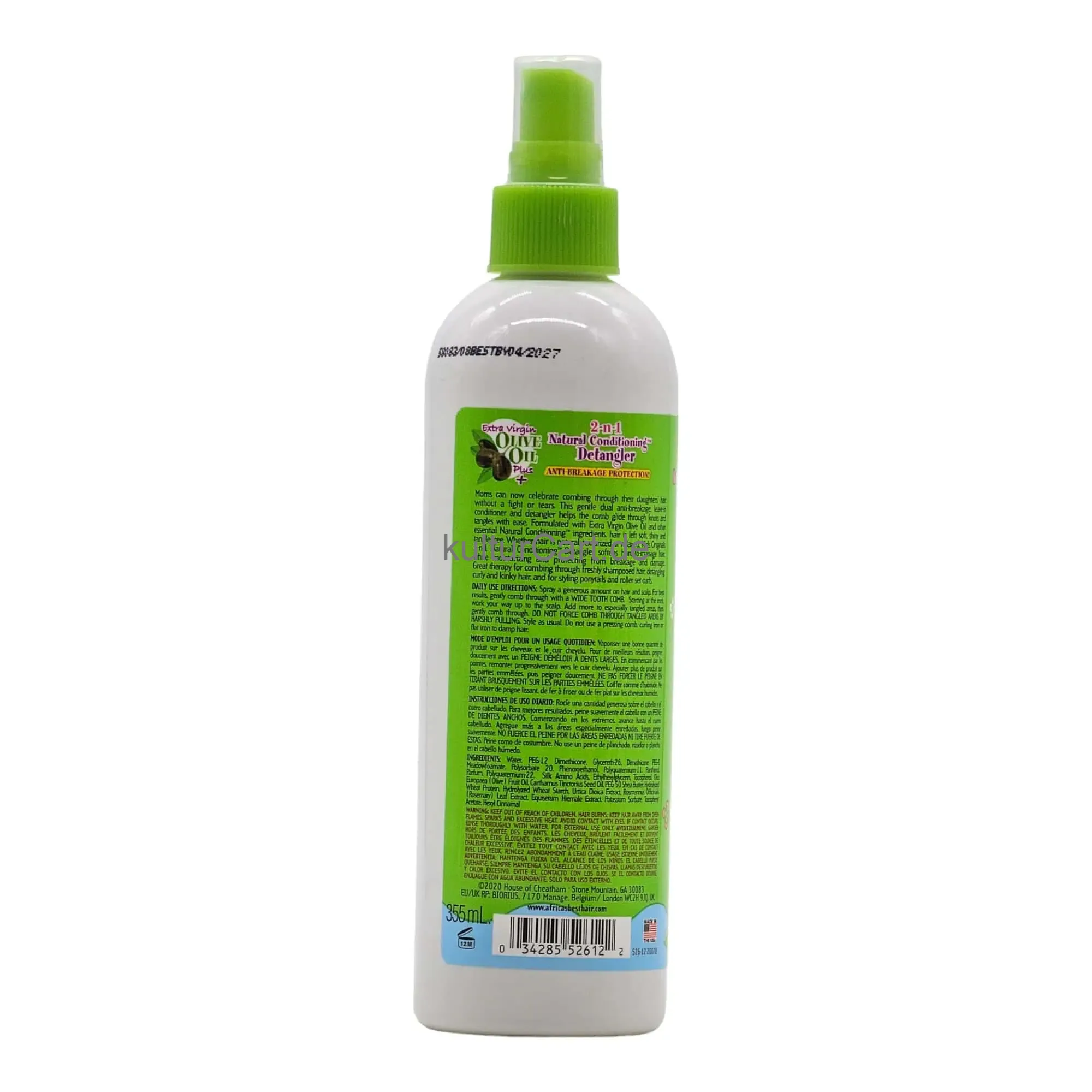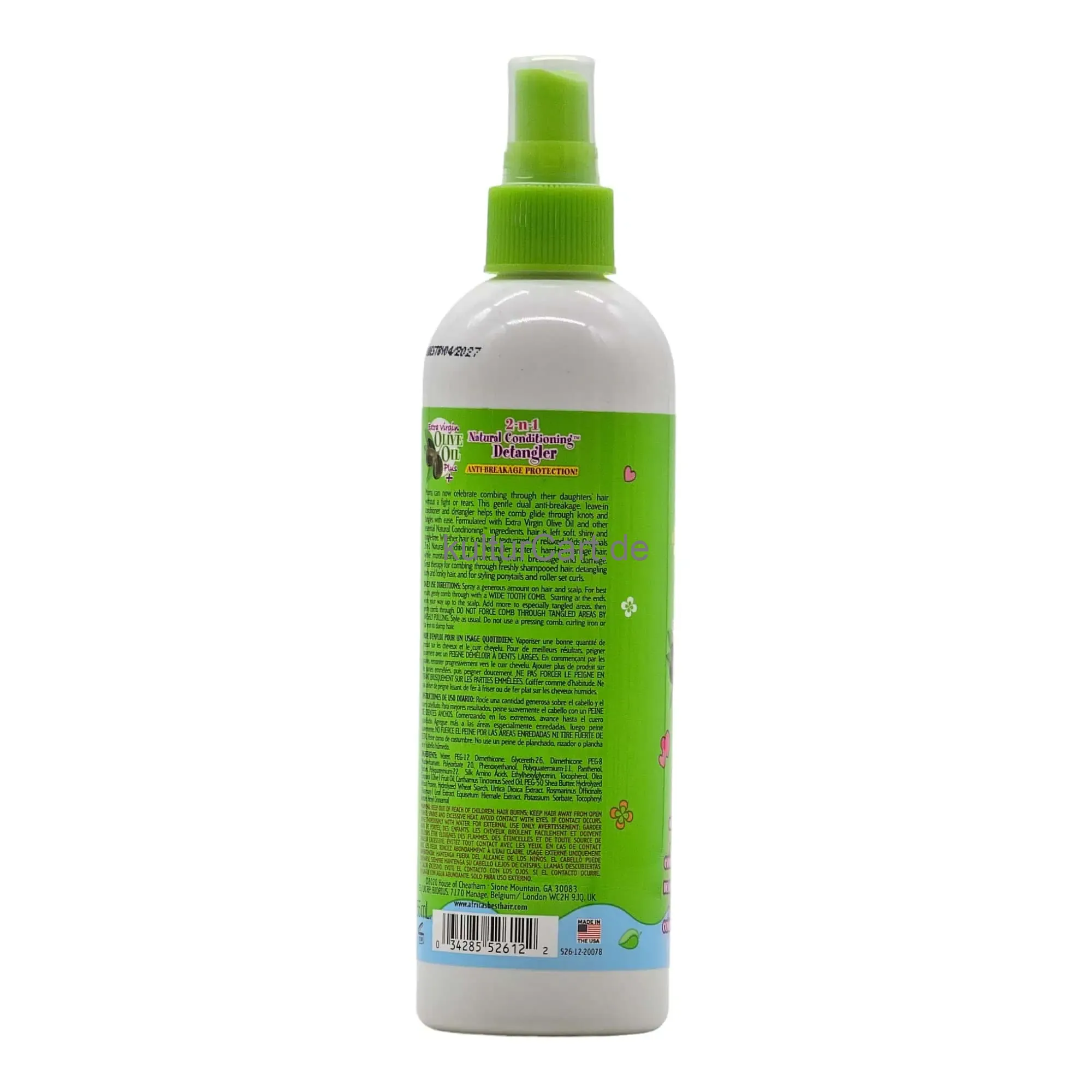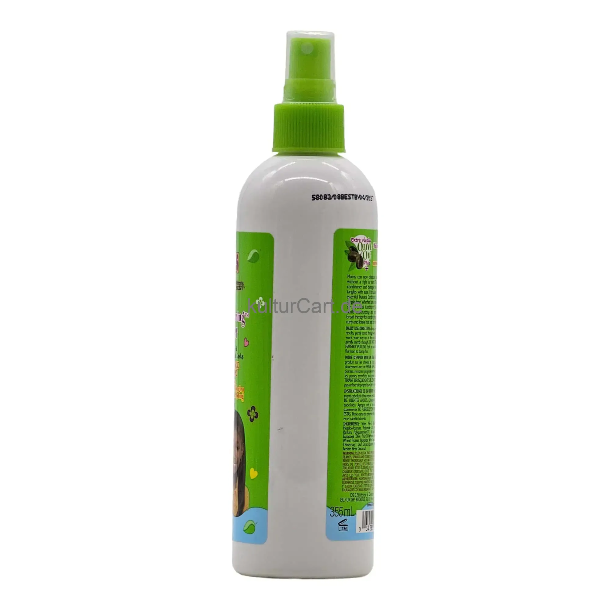 Kids Originals 2 in 1 Natural Conditioning Detangler, in a 355ml bottle, is designed to provide intense moisture and detangling benefits for children's hair. This 2-in-1 formula helps to soften, detangle, and add shine to young hair, making it easier to manage and style.