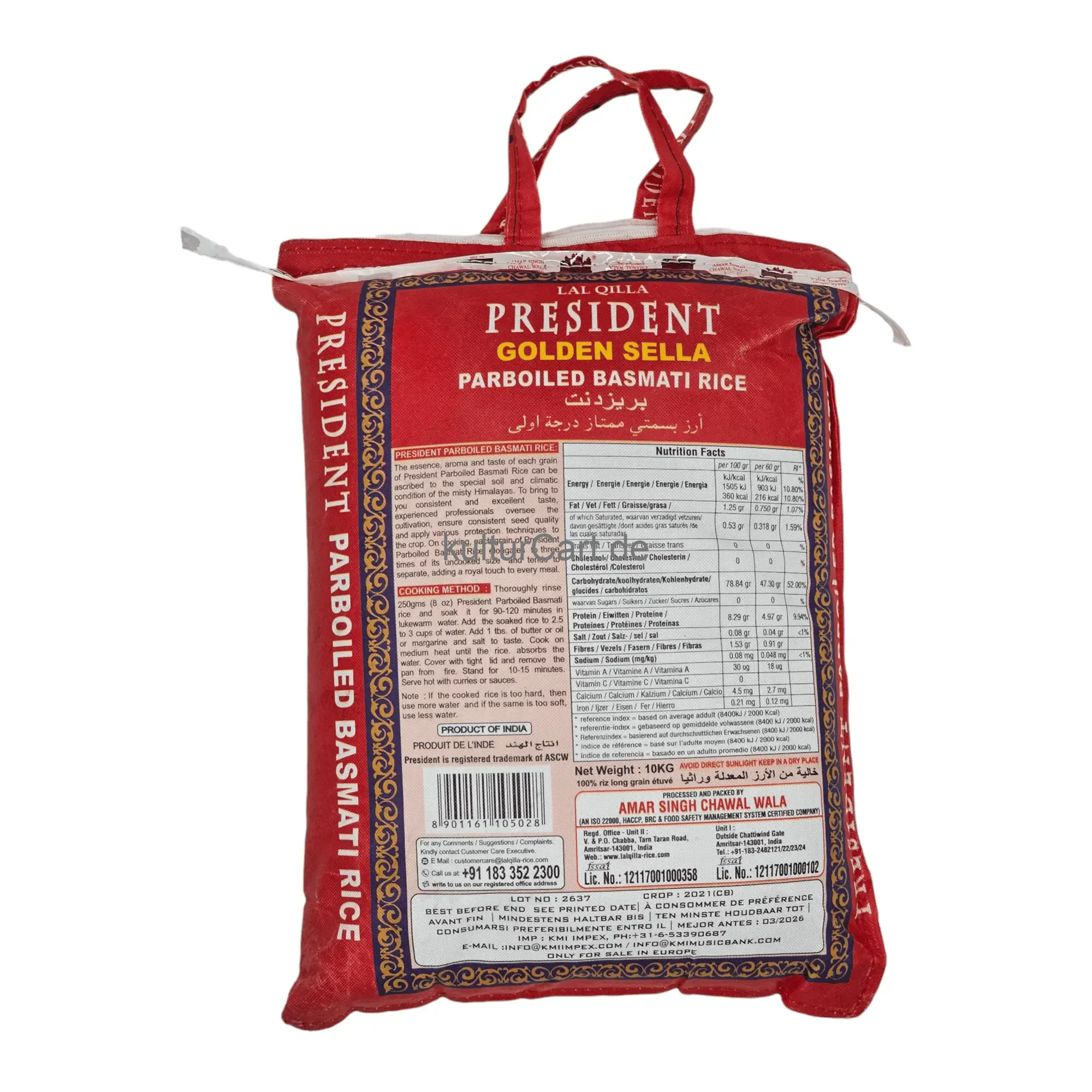 President Golden Sella Parboiled Basmati Rice, in a 10kg bag, undergoes a unique parboiling process that locks in nutrients and alters the texture of the rice, making it an excellent choice for dishes requiring longer holding times or special preparation methods.