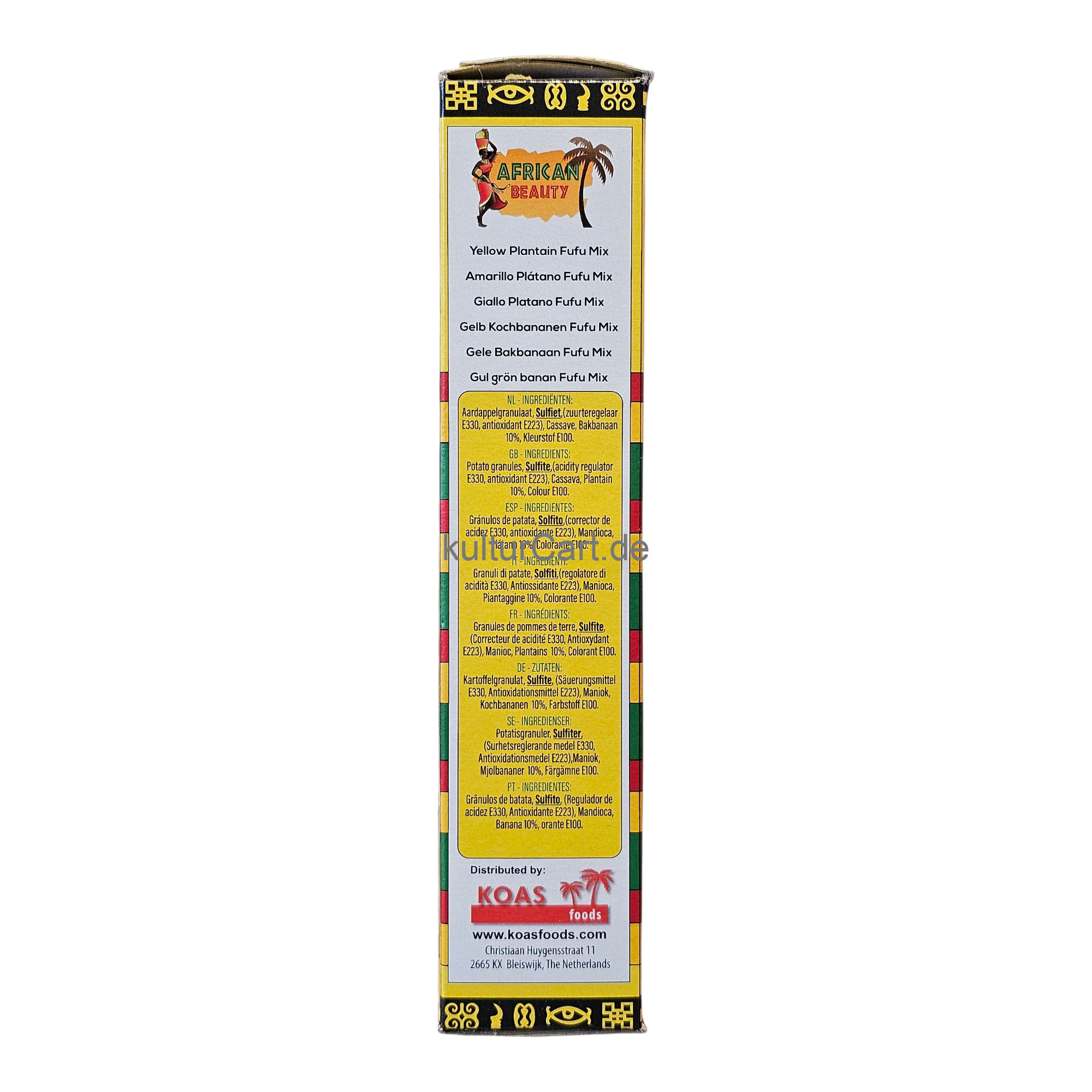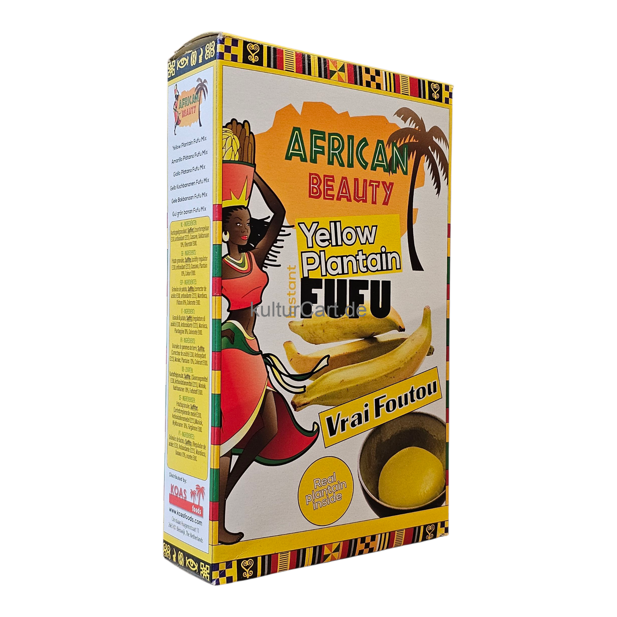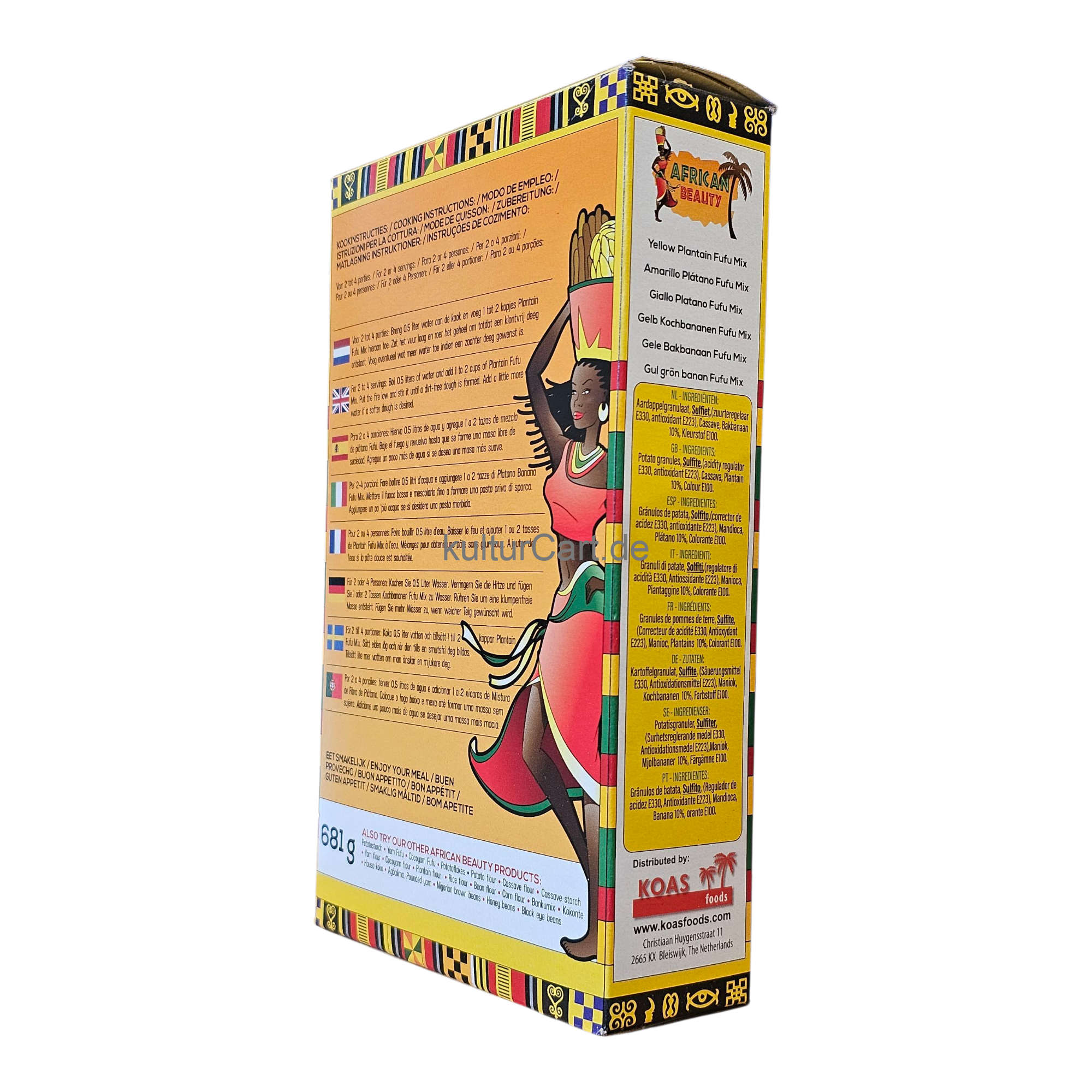 Savor the taste of tradition with African Beauty Yellow Plantain Fufu. Made from premium plantain flour and expertly processed to perfection, this 681g pack offers the authentic flavor and texture of traditional fufu. Simply mix with hot water to achieve a smooth and fluffy consistency, perfect for pairing with your favorite African soups and stews. With African Beauty Yellow Plantain Fufu, enjoying authentic African cuisine has never been easier.