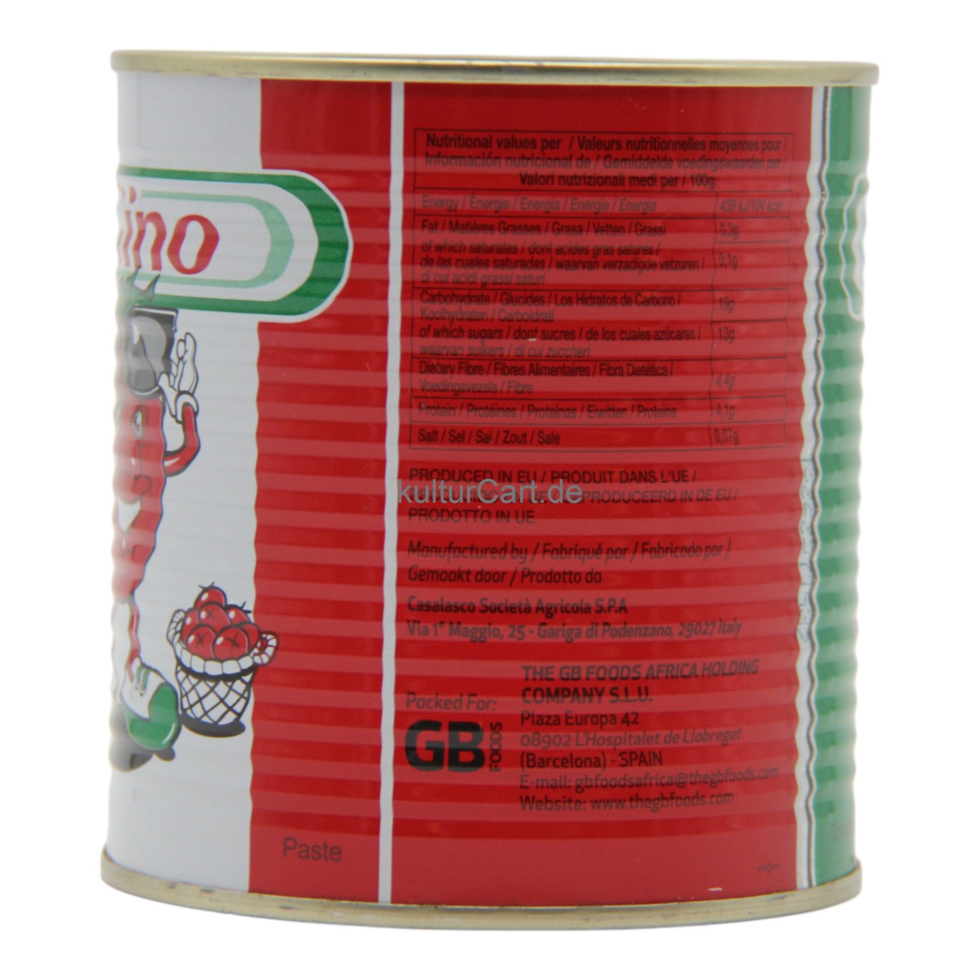 Packaged in an 800g can, Gino Tomato Paste is convenient to store and use. The can design ensures that the paste stays fresh and flavorful until you're ready to use it, making it a practical choice for both home cooks and professional chefs.