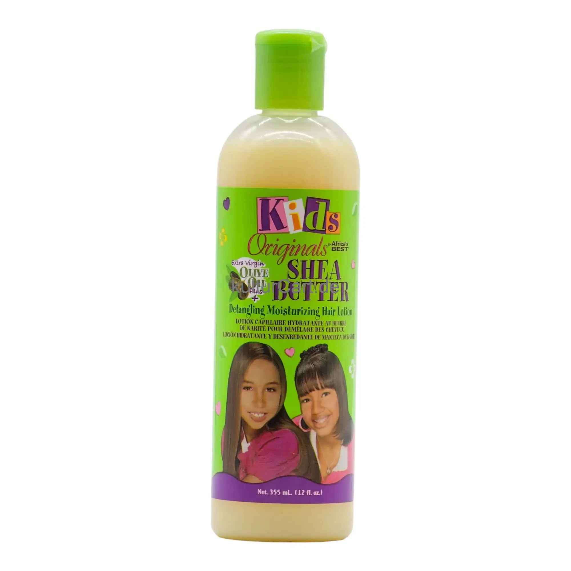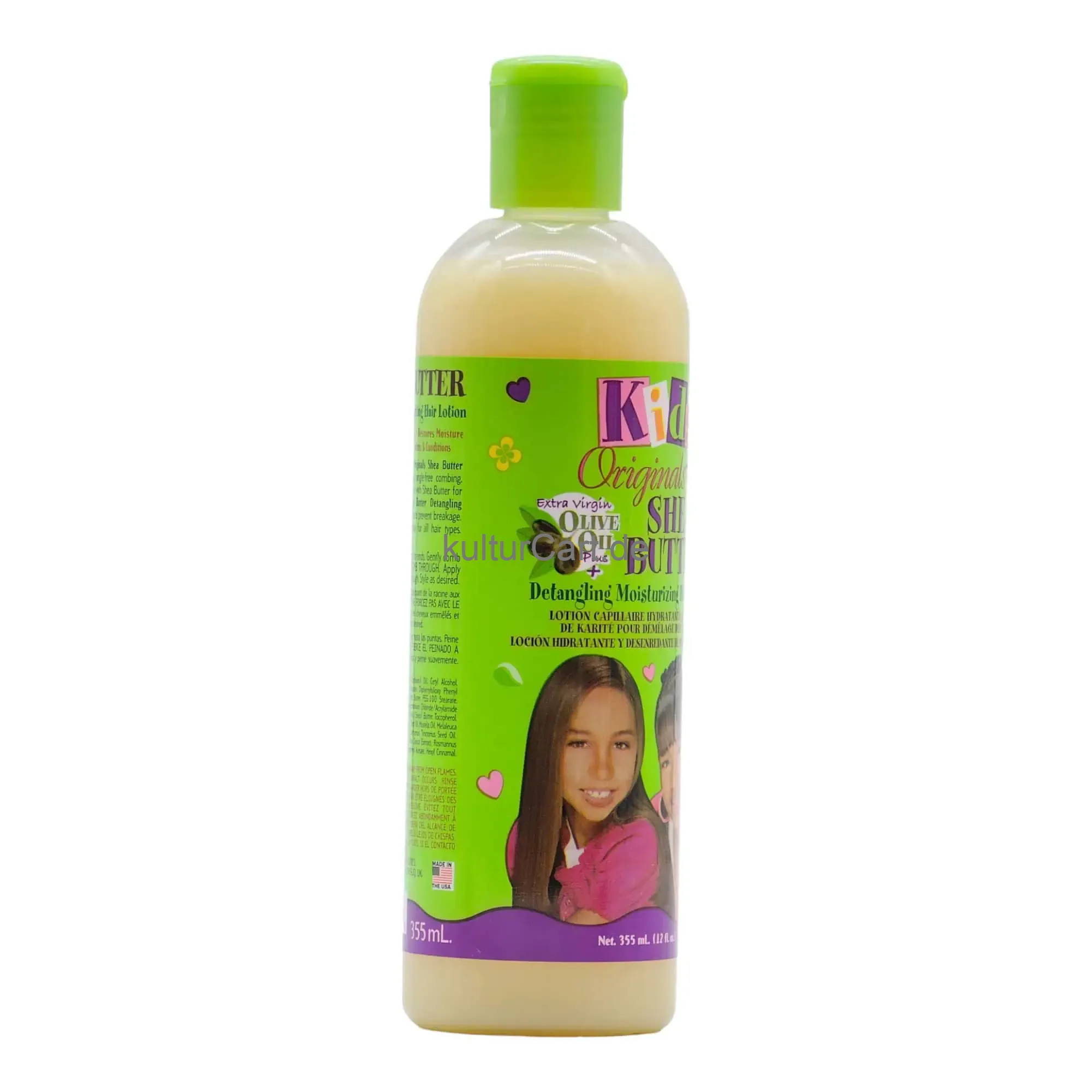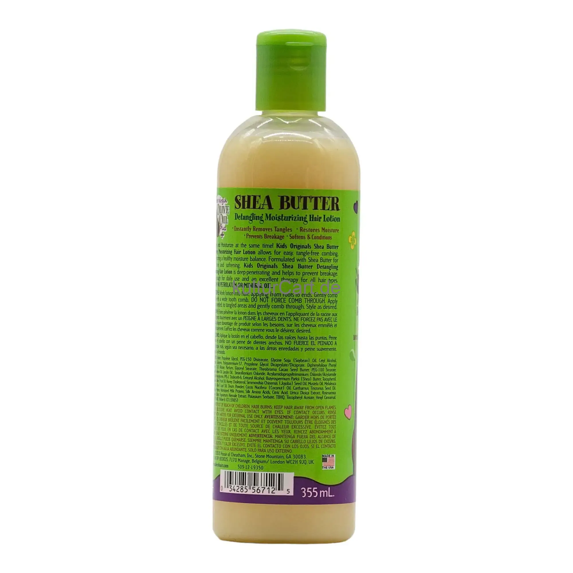 Kids Original Shea Butter Detangling Moisturizing Hair Lotion, in a 355ml bottle, is a gentle and effective lotion designed to provide intense moisture and detangling benefits for children's hair. Enriched with shea butter, this lotion helps to soften, detangle, and add shine to young hair.